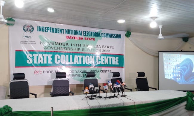 As of Sunday, the INEC State Returning Officer for the Bayelsa State governorship polls, Prof Kuta Farouq, had presided over the collation of results from six local governments, namely, Yenagoa, Ogbia, Nembe, Ekeremor, Sagbama, and Kolokuma/Opokuma.