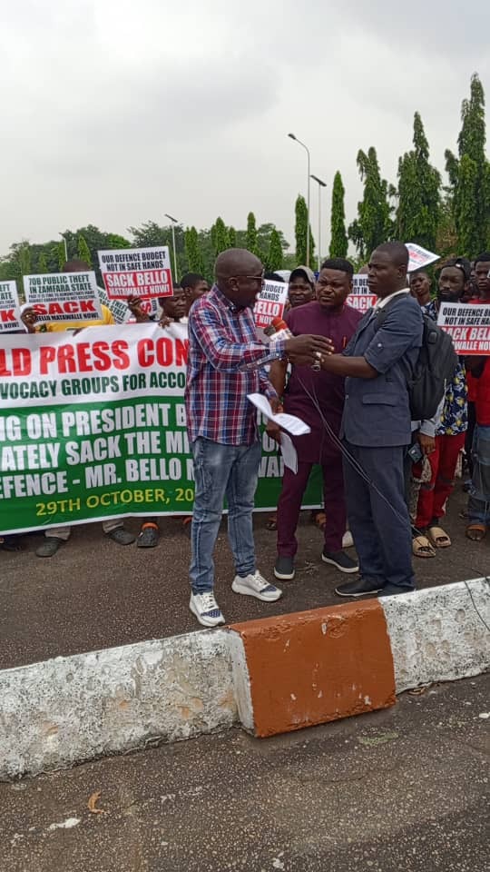 Scores of pro-democracy activists on Wednesday marched to the National Assembly in Abuja to demand the sacking of the Minister of Defence, Bello Matawalle.