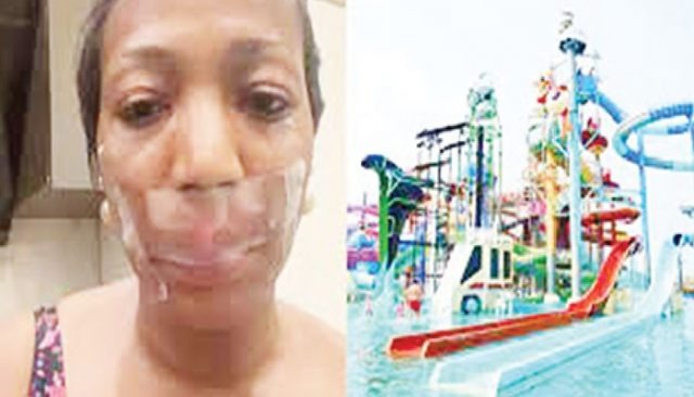 In her Instagram post, she recounted, “This morning, I went to Giwa Gardens with my family to have fun, and it did not end well. The pools are too shallow for the long slides, my daughter hit her head when she went on it and came back to tell me I shouldn’t go…I thought she was exaggerating. I went on the slide and hit my forehead head on the tiles in the pool; I have been to at least five water parks in different countries; there is always a rubber laid in all the pools, my head hit the tiles directly, and my lips cut into two.”