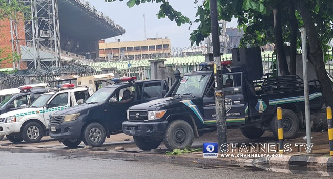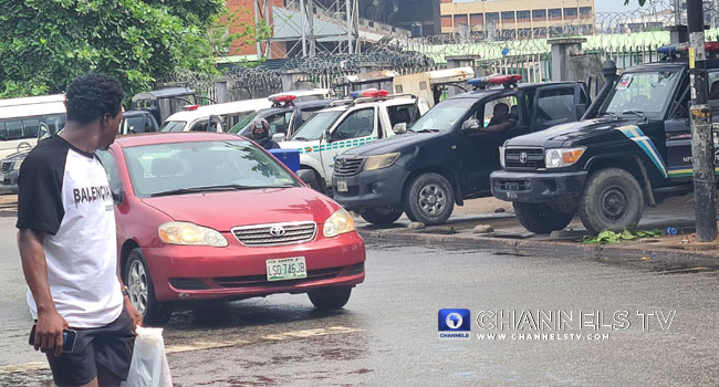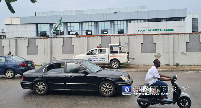 There was tight security at the premises of the Court of Appeal in Lagos on Wednesday afternoon with the court set to deliver judgment on the appeal challenging the victory of Governor Babajide Sanwo-Olu in the March 18 governorship election.