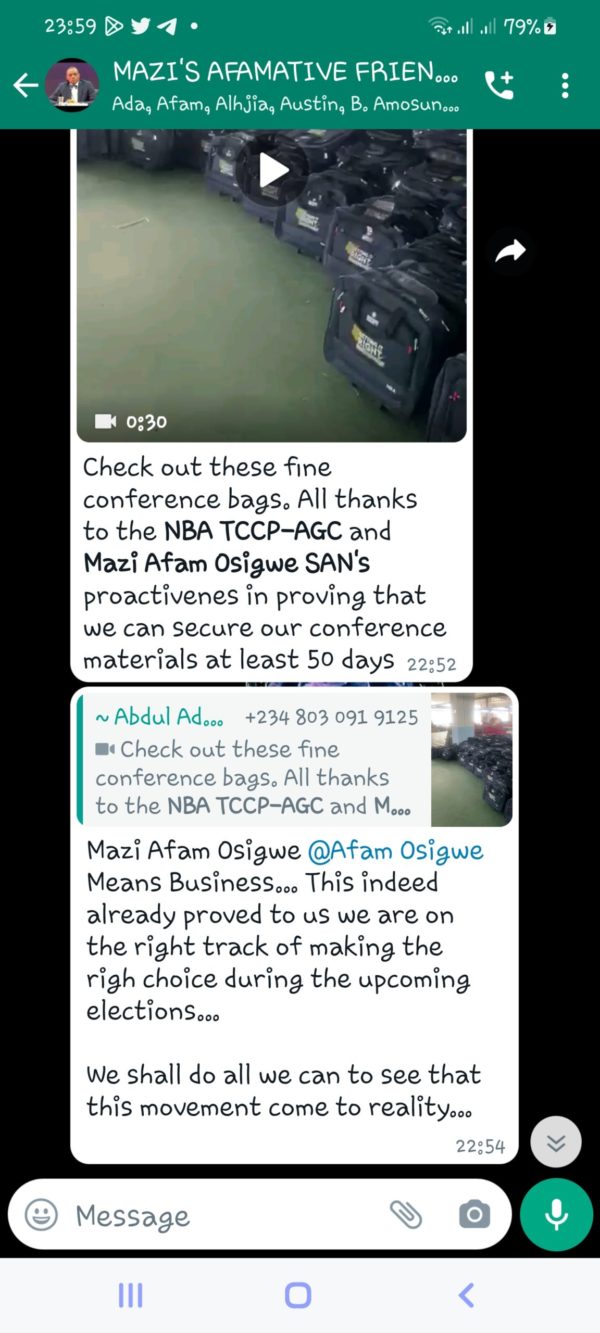 A viral Video on Lawyers Whatsapp groups and a message accompanying it reveals that for the first time in Nigerian Bar Association’s history, the NBA AGC Conference materials are ready 50 days to the commencement of the Conference.